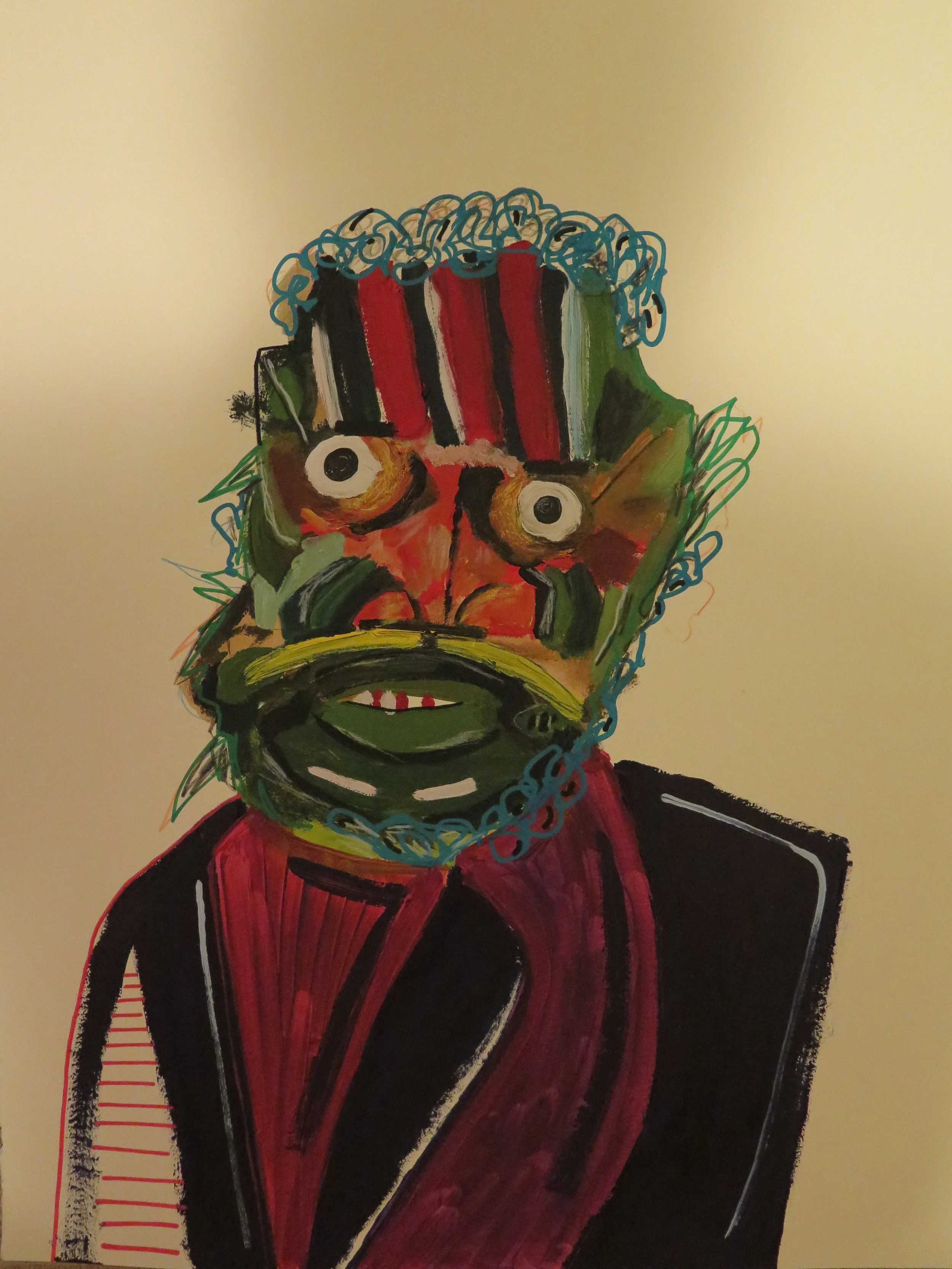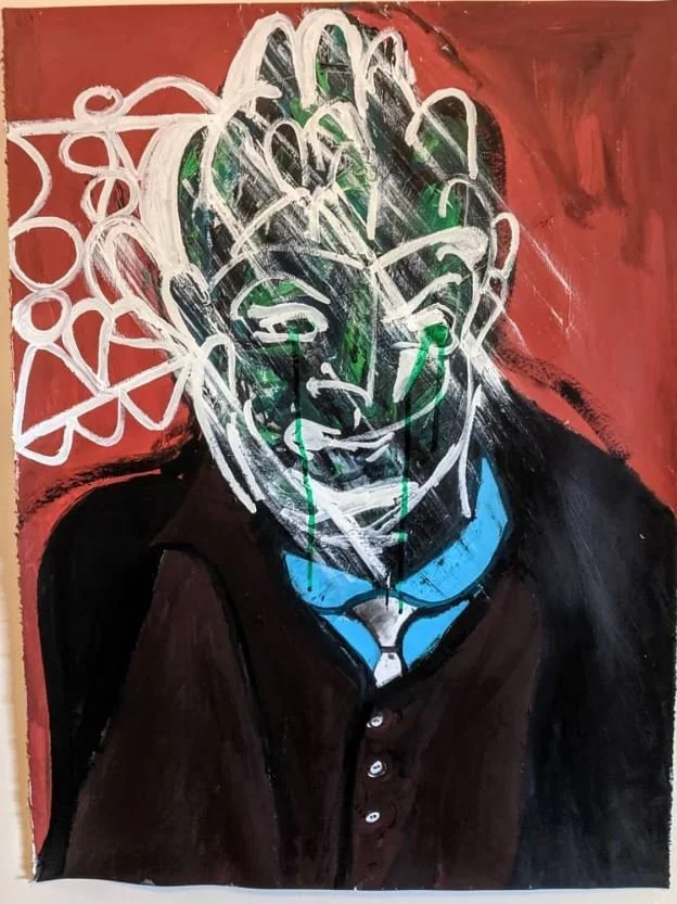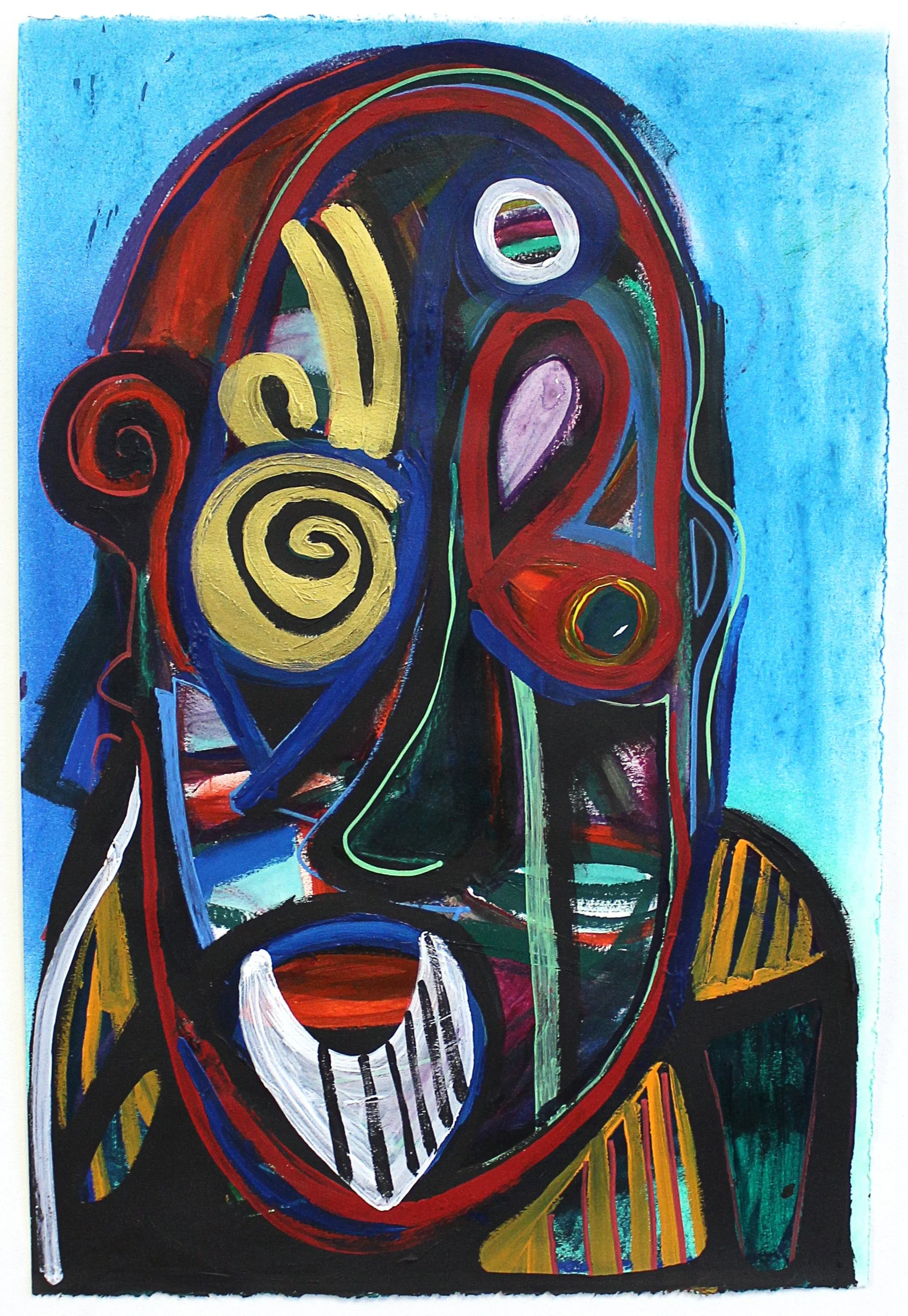 My work is bold and colourful, influenced by graffiti, comics, Cubism, and tribal art, among other styles. These works on paper allow for spontaneity and experimentation, combining diverse influences to create dynamic, expressive compositions.