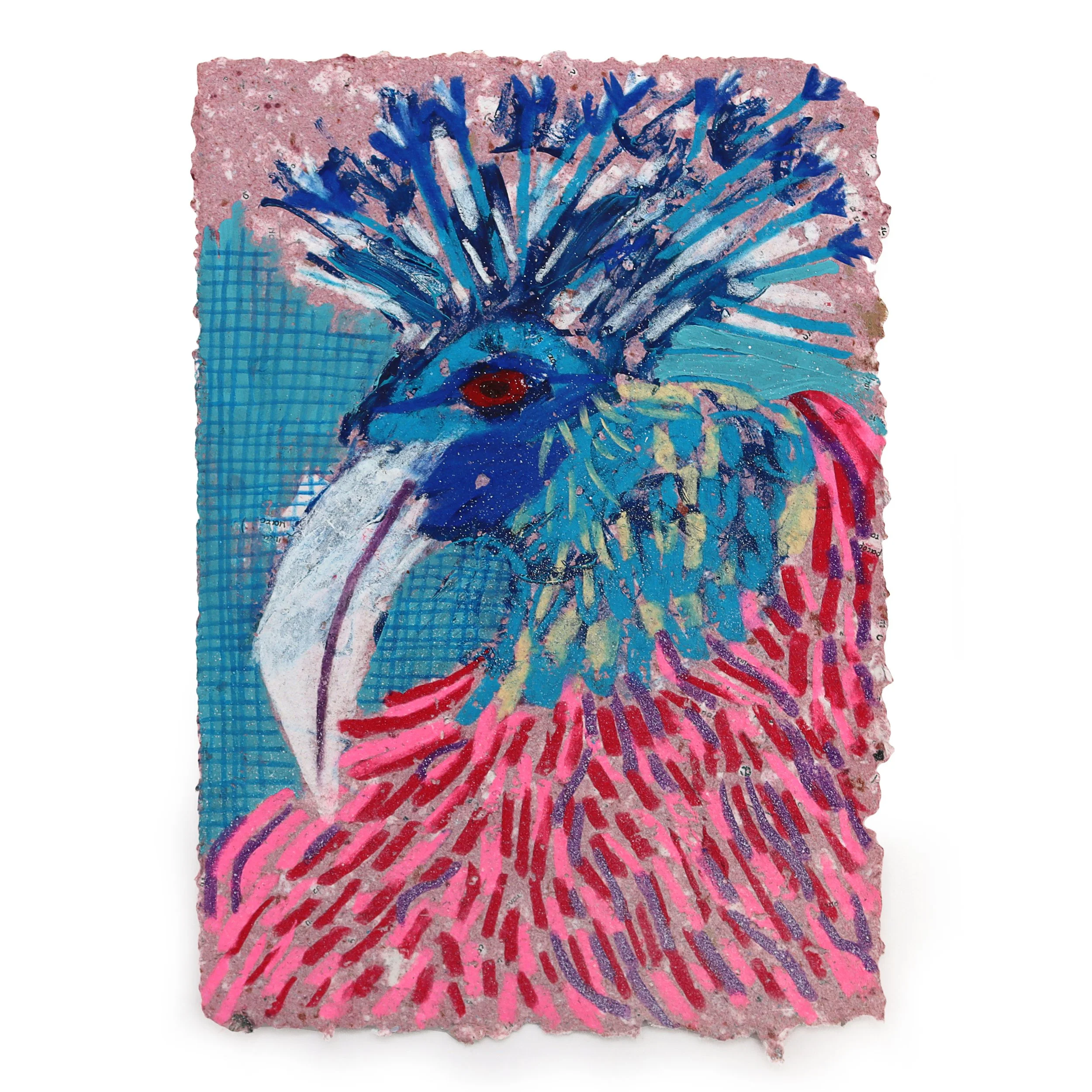 Kookaburra Kickin’ It With Cockatoo Frills (2022), Mixed Media on Handmade Paper, 21 x 29.7 cm