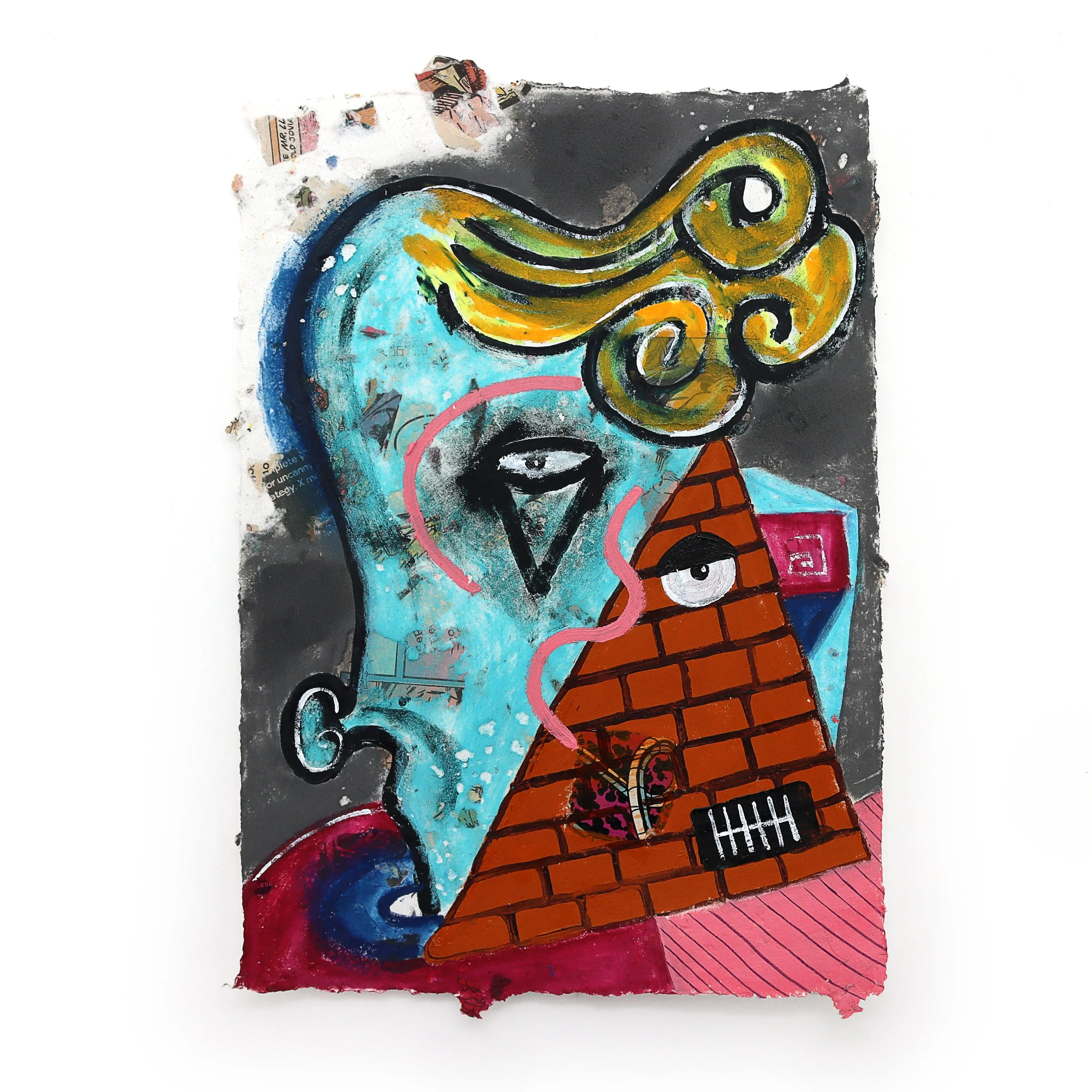 Pyramid Dreams (2021), Mixed Media on Handmade Paper, 21 x 29.7 cm