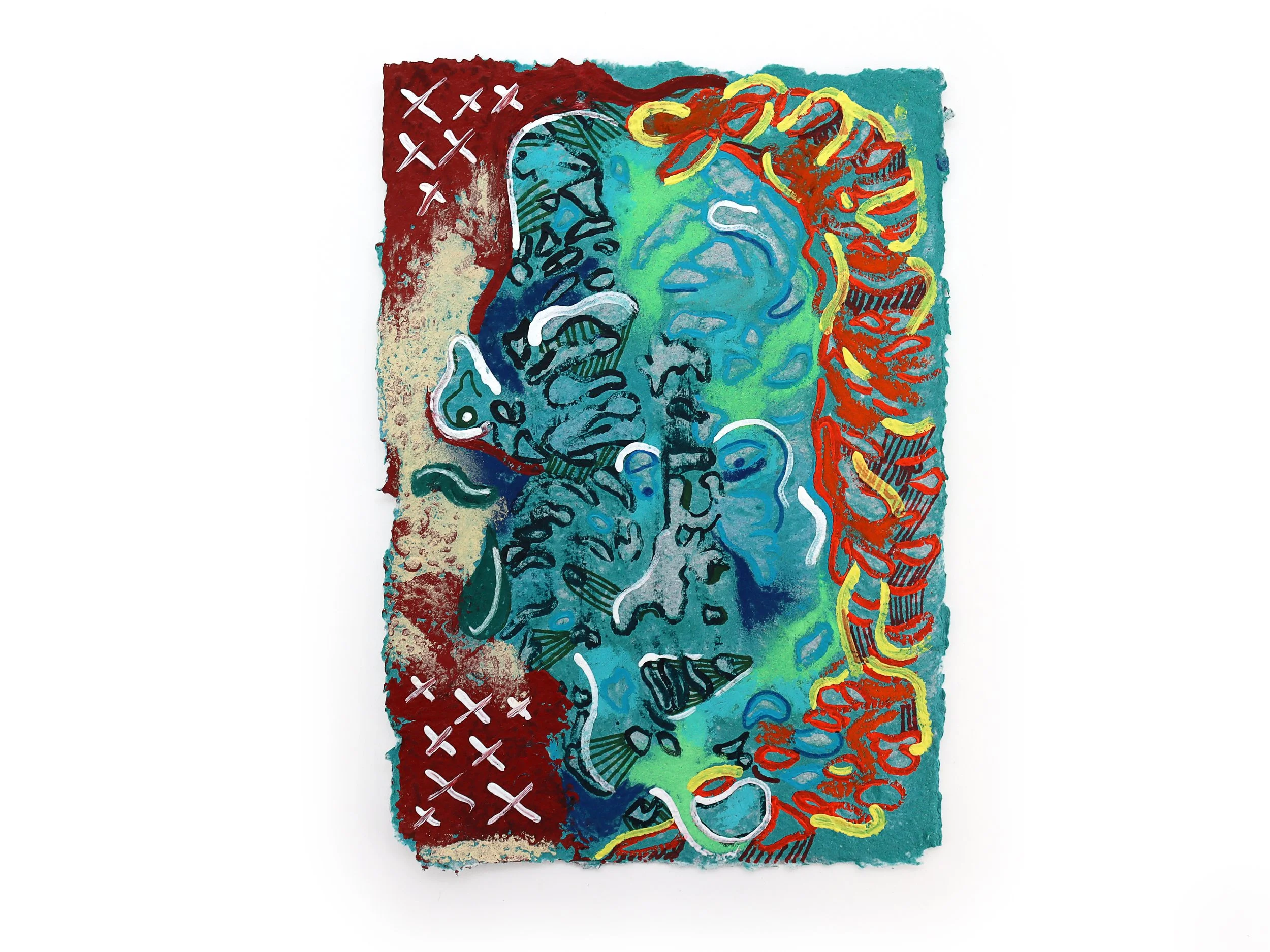 Alien Artefacts (2020), Mixed Media on Handmade Paper, 21 x 29.7 cm